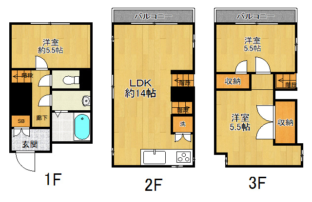 | 建物階数 | 地上3階 | 部屋階数 | |